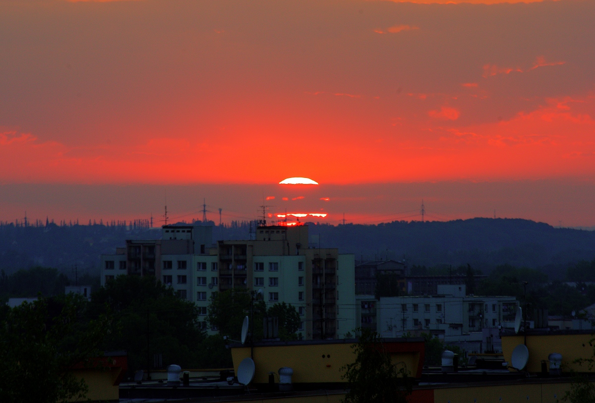 Konečně by mohlo sprchnout aby se pročistil vzduch. Večer jde vidět co se nad horizontem drží - ani slunce to neprosvítí (druhá fotka).