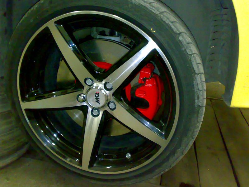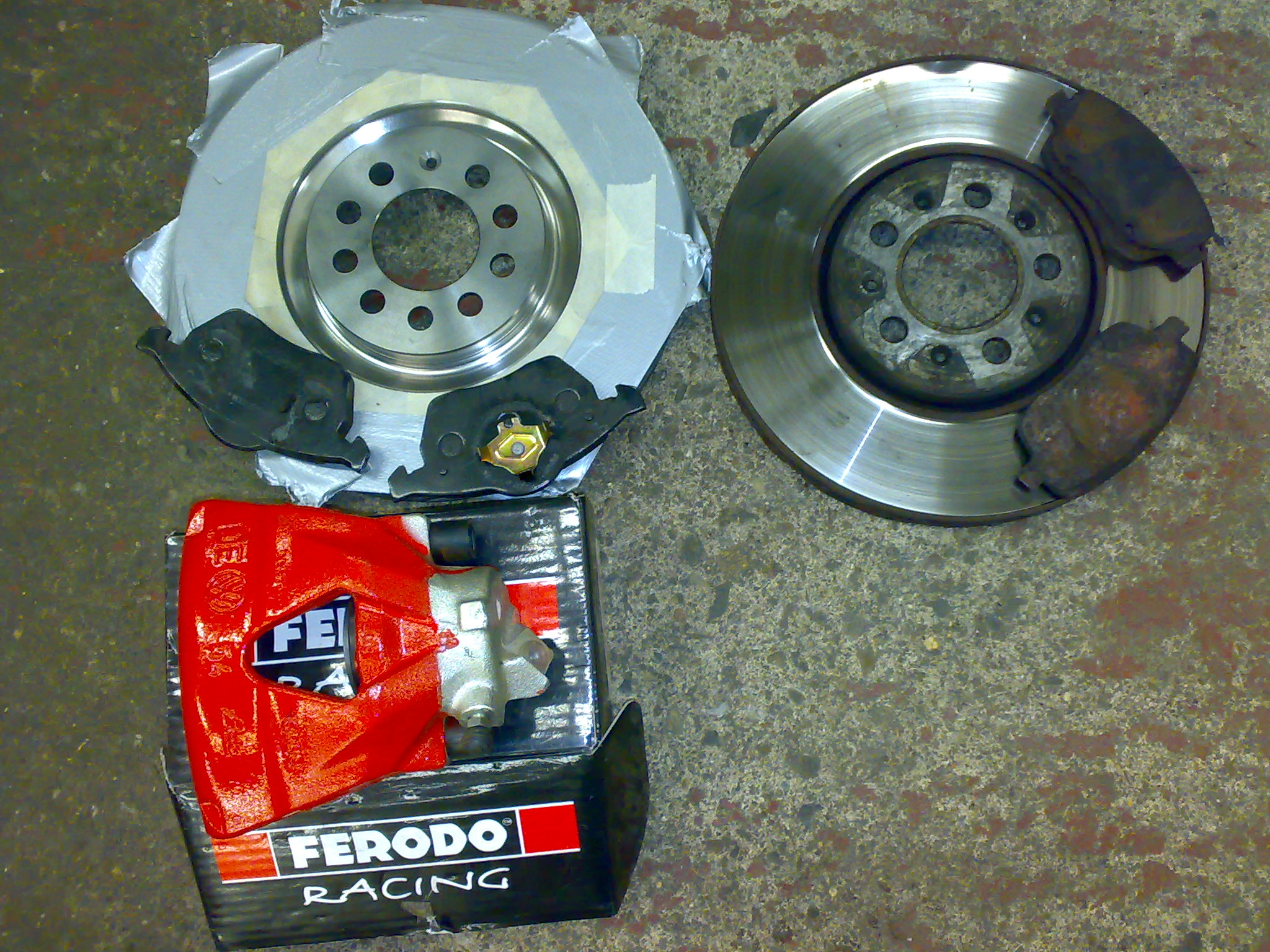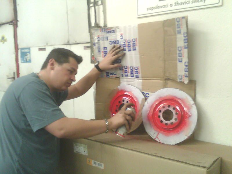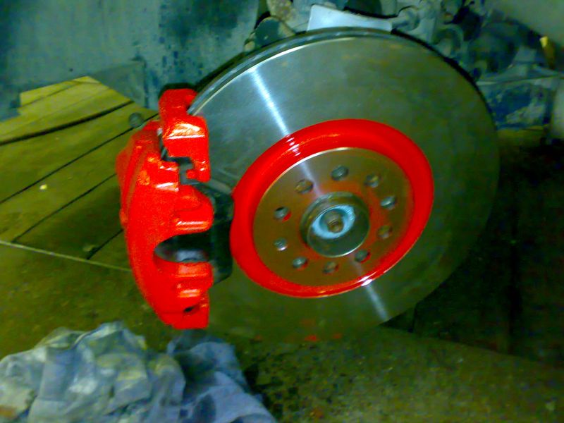 No a tady diky chipu jsem zjistil, ze brzdy 288mm urcite nebudou stacit, takze se sehnaly nove brzdice a drzaky brzdicu z Octavie RS na 312mm kotouce a probehla montaz + barevny nastrik... malem bych zapomel, kotouce byly pouzity EBC a desticky od Ferodo rada DS 2500 na zvysene namahani...